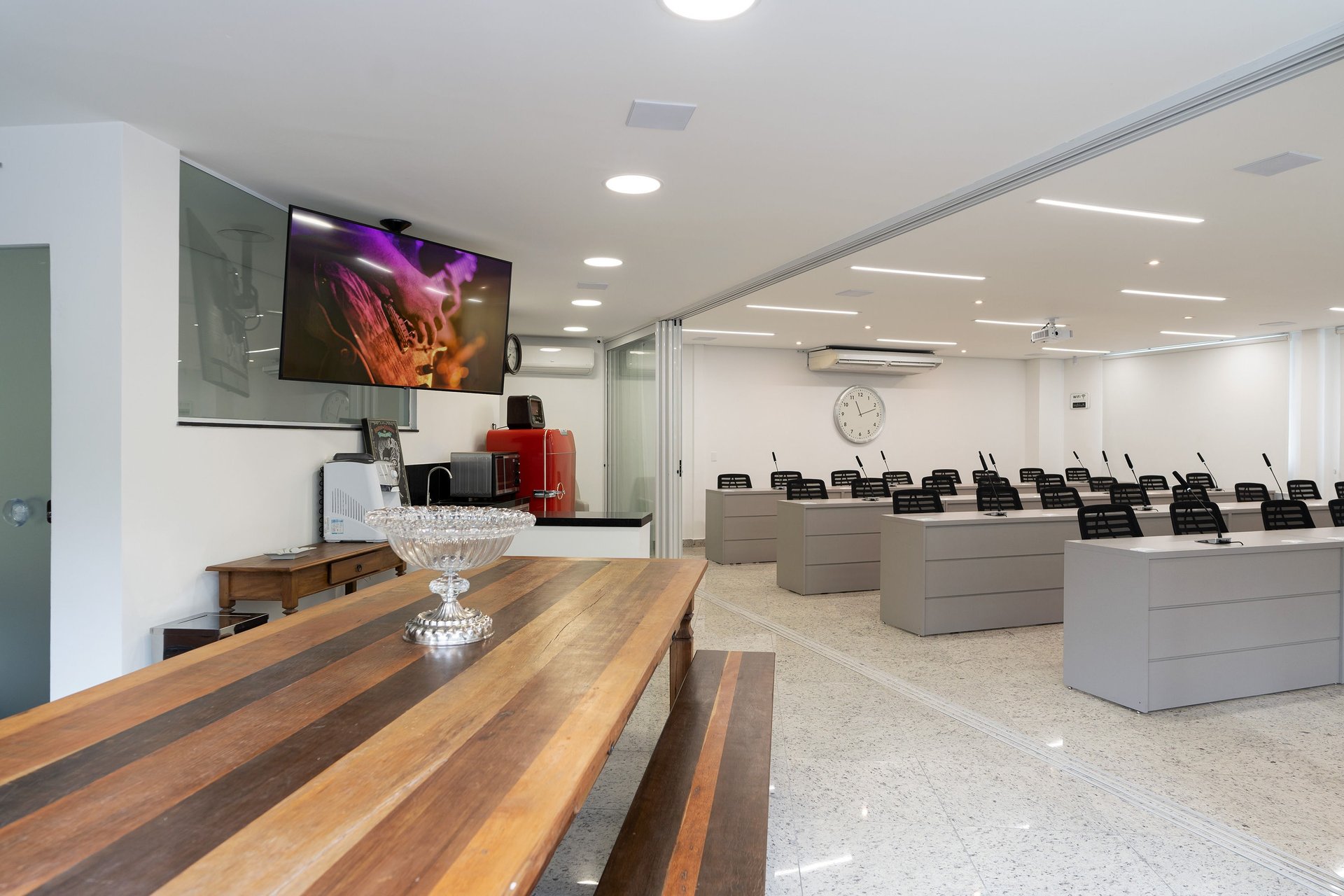 Estrutura adequada para palestras, encontros de negócios, apresentações e reuniões ampliadas.